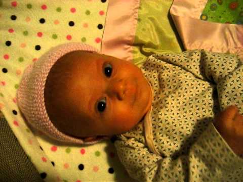 This little baby is working hard to keep her eyes on Mom and share smiles with her. Baby doesn't quite have control of her head and body so she often loses eye contact. You can see her work hard to get it back. With this kind of encouragement from Mom, baby will soon be ready to start "talking" to Mom as well.