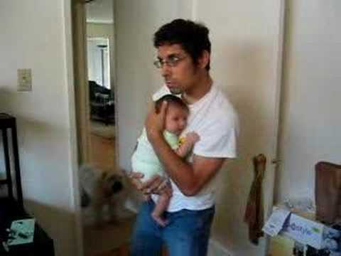 This looks pretty wild, but Dad is being very careful. He has his baby well cradled against him. Dad is moving very smoothly so there are no big, hard bounces or jerks that could rattle the baby's brain. Baby is happy and calm.